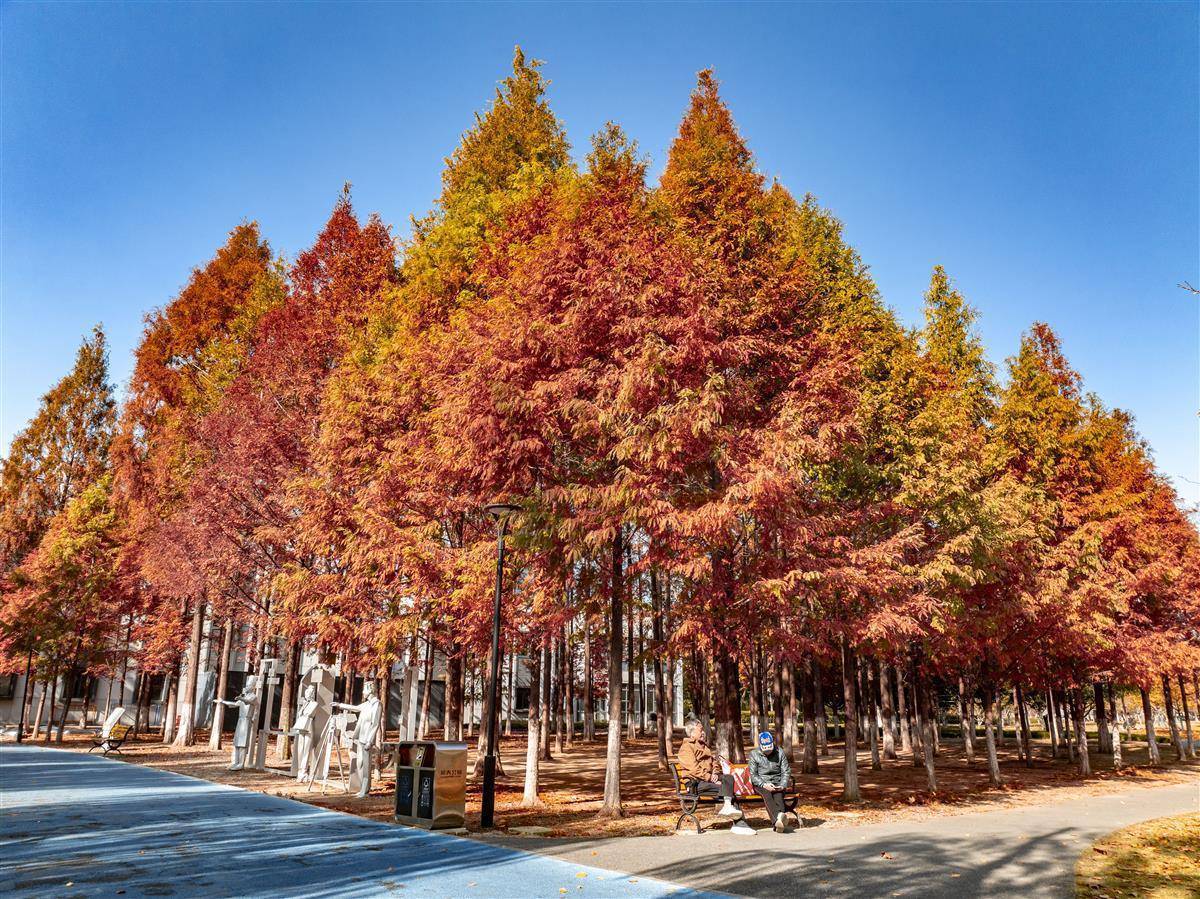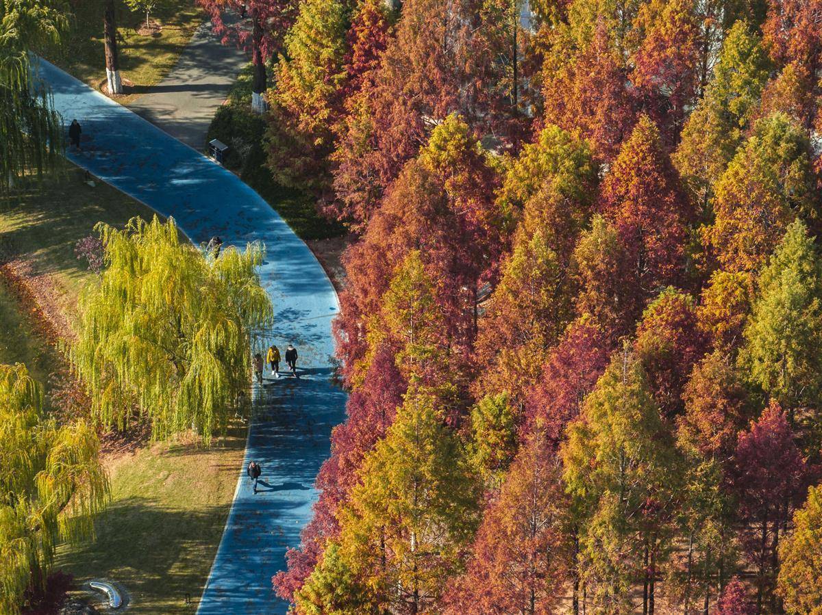 据了解,常青公园拥有多种色叶树木。其中天津配资大本营,金陵红枫151棵,为2021年底公园改造后重新开放时引进的特色树种,也是江汉区属公园中独有的品种;另有水杉355棵,并搭配鸡爪槭、乌桕等色叶植物,形成丰富的季相景观。
