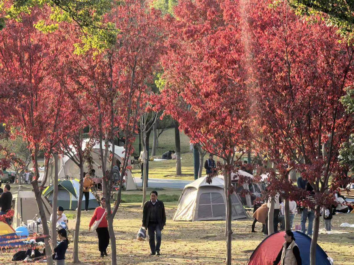 同时,今年公园推出了一项惠民举措——公园内所有草坪区域均向市民开放,允许进行露营活动。在红叶树下铺开野餐垫,搭起帐篷,已成为不少市民享受冬日暖阳的新选择。